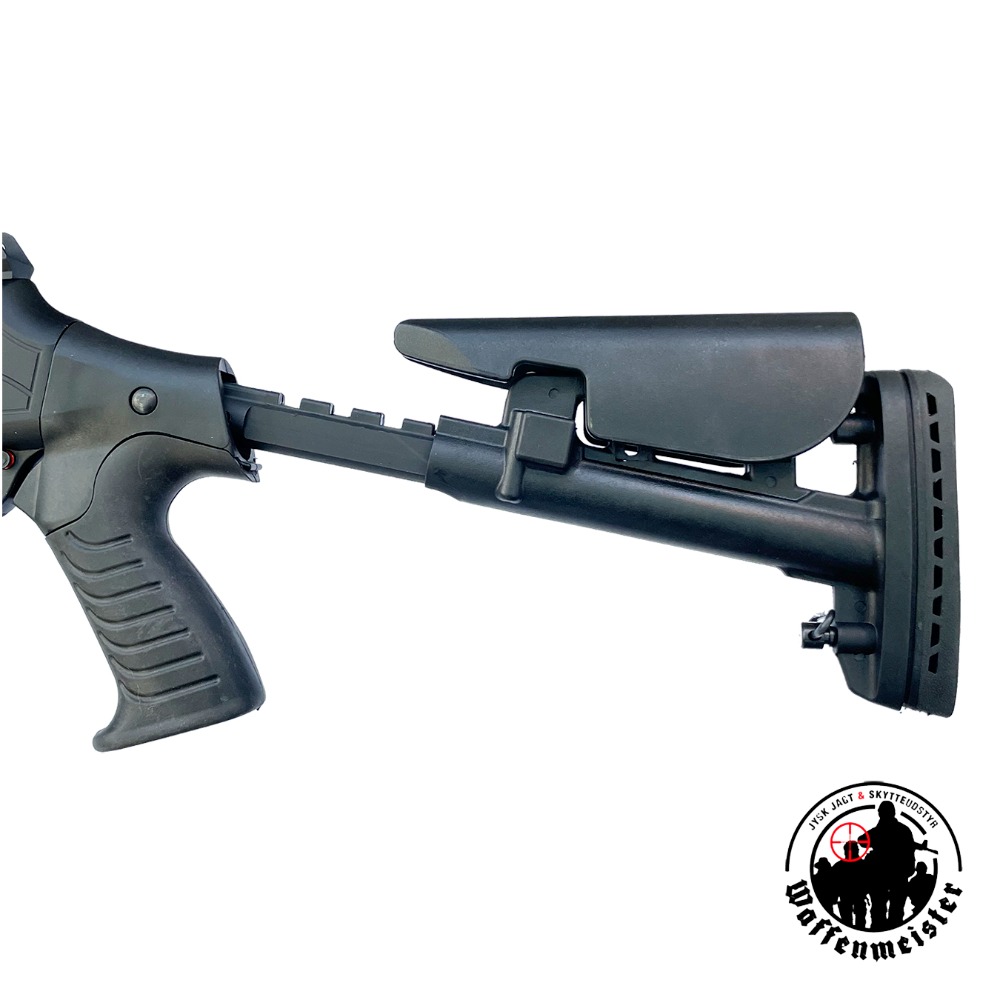 Hatsan Escort haglegevær, teleskop skæfte med justerbar længde og højdejusterbar kinpude.