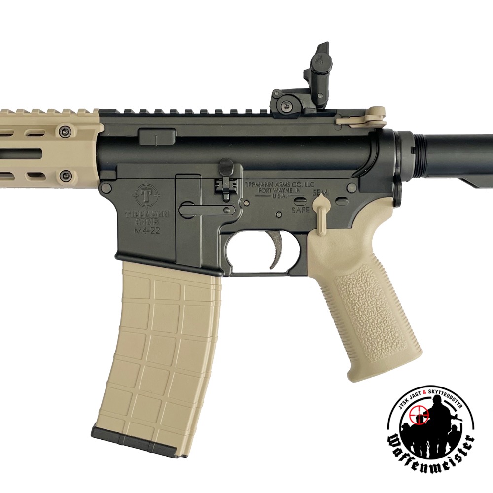 M4-22 ELITE er en semi-automatisk taktisk rimfire salonriffel kamret i Cal. 22 LR, og med aluminium upper og lower, og alle funktionerne som i en ægte M4.